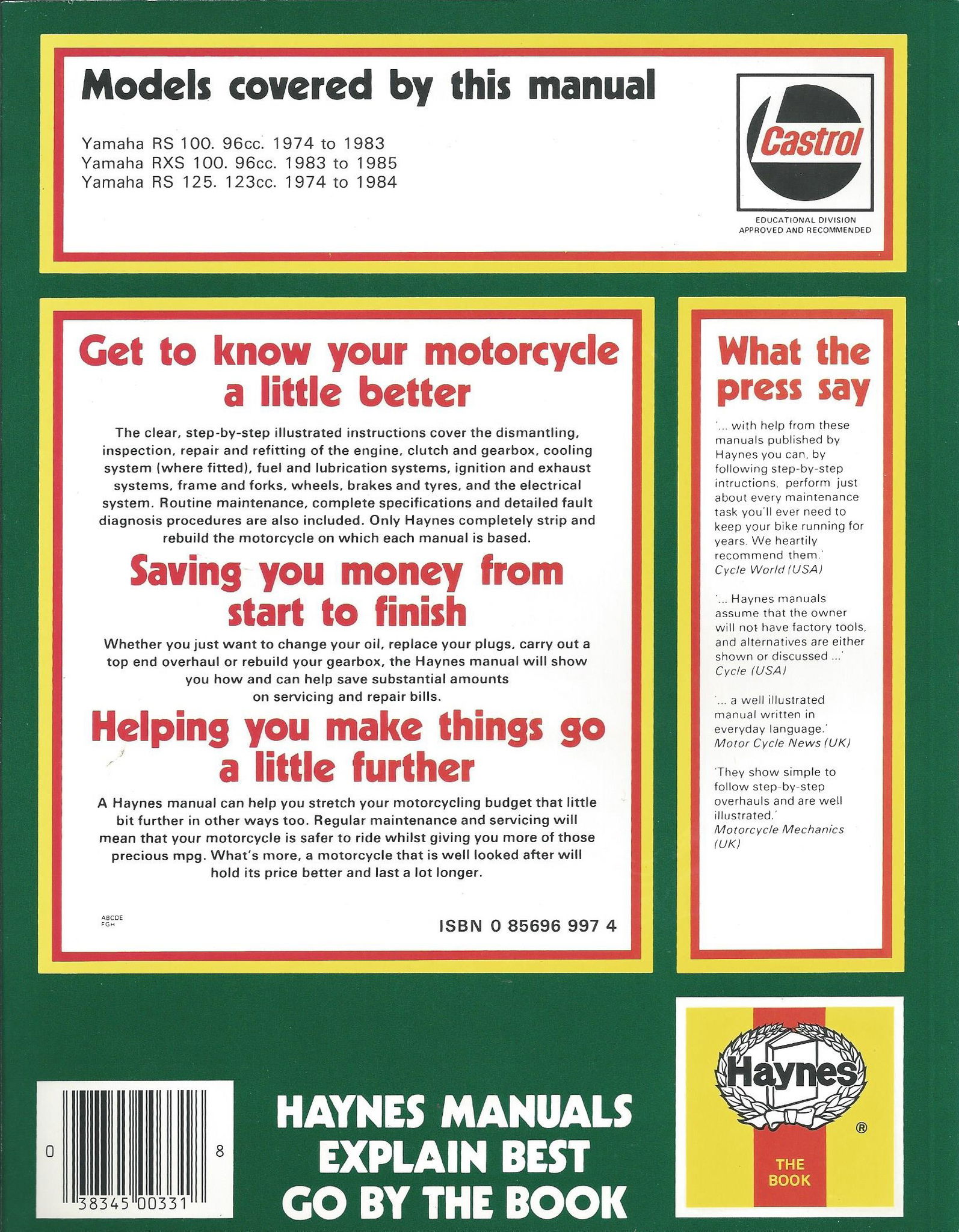 Haynes reparationshandbok – Yamaha RS100/RXS100/RS125 1974-85 – Mjuk pärm