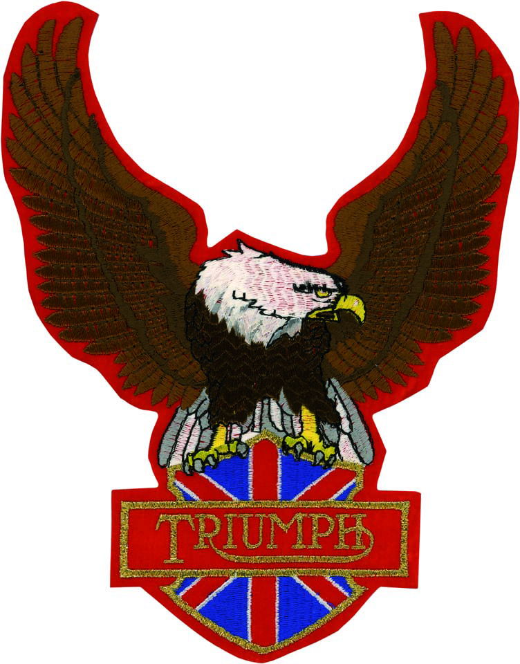 Tygmärke med stor örn och Triumph-emblem, utfört med mycket tät brodyr för hög kvalitet och lång hållbarhet.